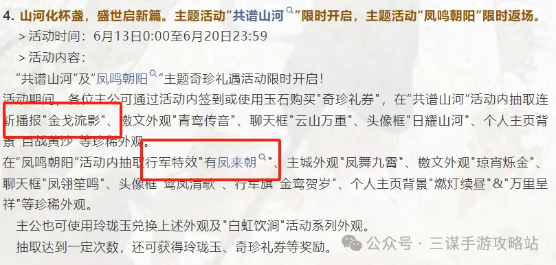 除了热度很高的主城皮肤有凤来朝系列返场,还有全新的连斩播报金戈流影系列。