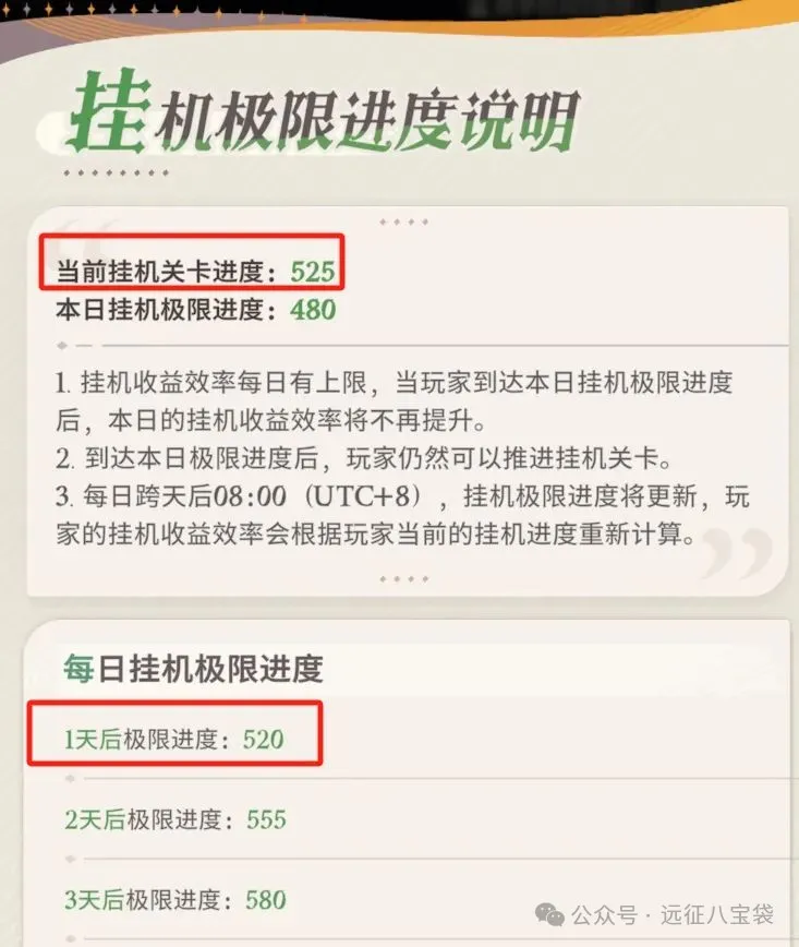 意味着推图到当日挂机收益极限后