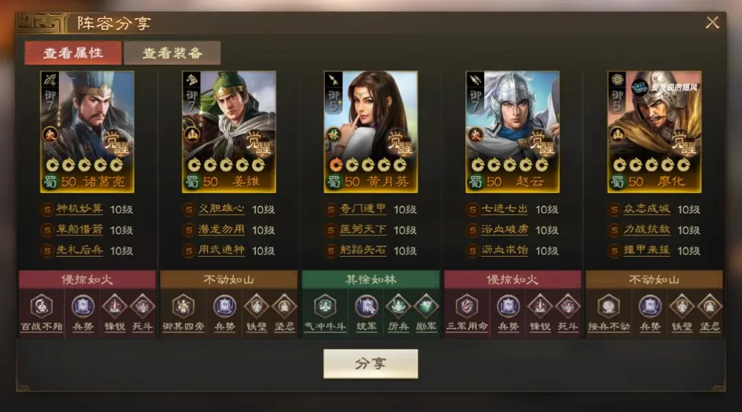 由于没法转阵营,这赛季的蜀骑大部分都是带的庞统,这队属于就算打输也能给对面打出战损,不容易白给的队伍。