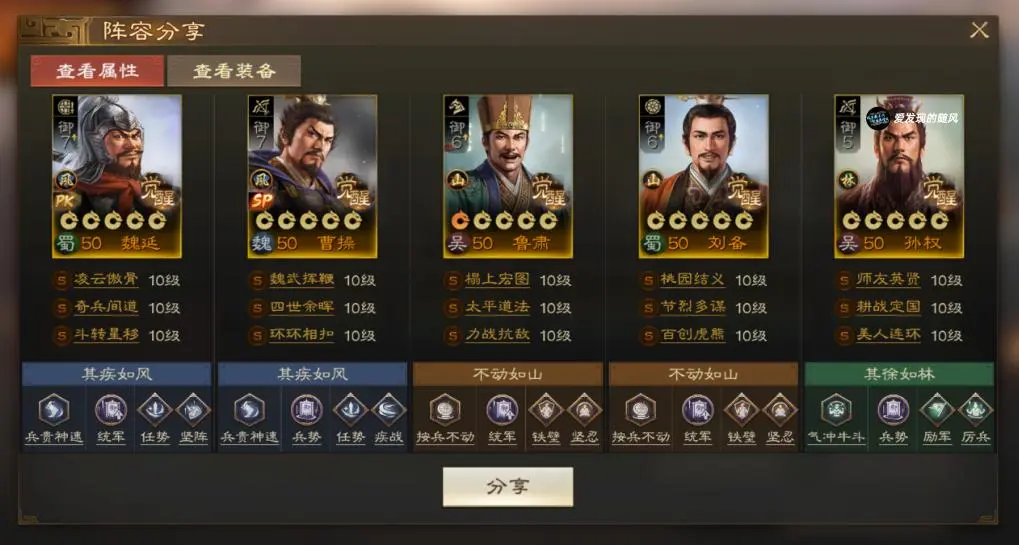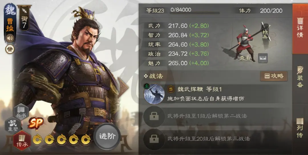 最后是SP曹操,因为他的被动是施加负面状态就能增伤,因此四世余晖的中毒也是可以给SP曹操增伤的,且四世余晖是启动,可以做到先启动增伤,再放另一个战法的效果。一般来说SP曹操如果要带四世余晖,那么另一个战法会搭配士别三日或者环环相扣。