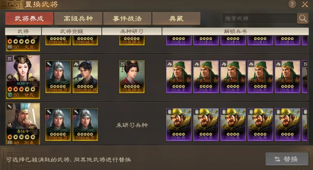 通过重置或置换将开荒武将提前拿出来