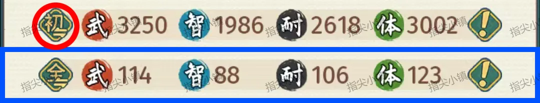 在前面的表中,我将只差1-2点武/智的,标黄了。一共7人: